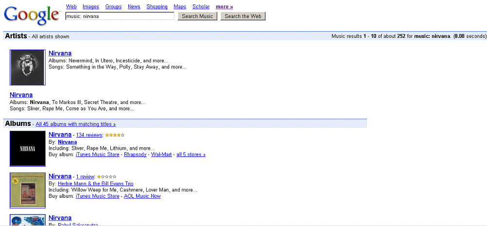 Según sé Google ya tiene un servicio de música para China pero desconozco sus detalles. Actualmente introdujeron el parametro “music:” para sus búsquedas pero esto solo regresa discografía sin posibilidad de descarga.